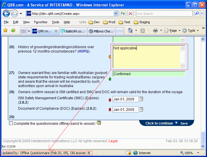 When the vessel has submitted the offline questionnaire to Q88.com; you can go back to the 'Create Questionnaire' page to review the changes.